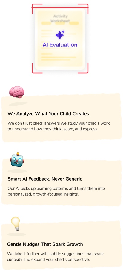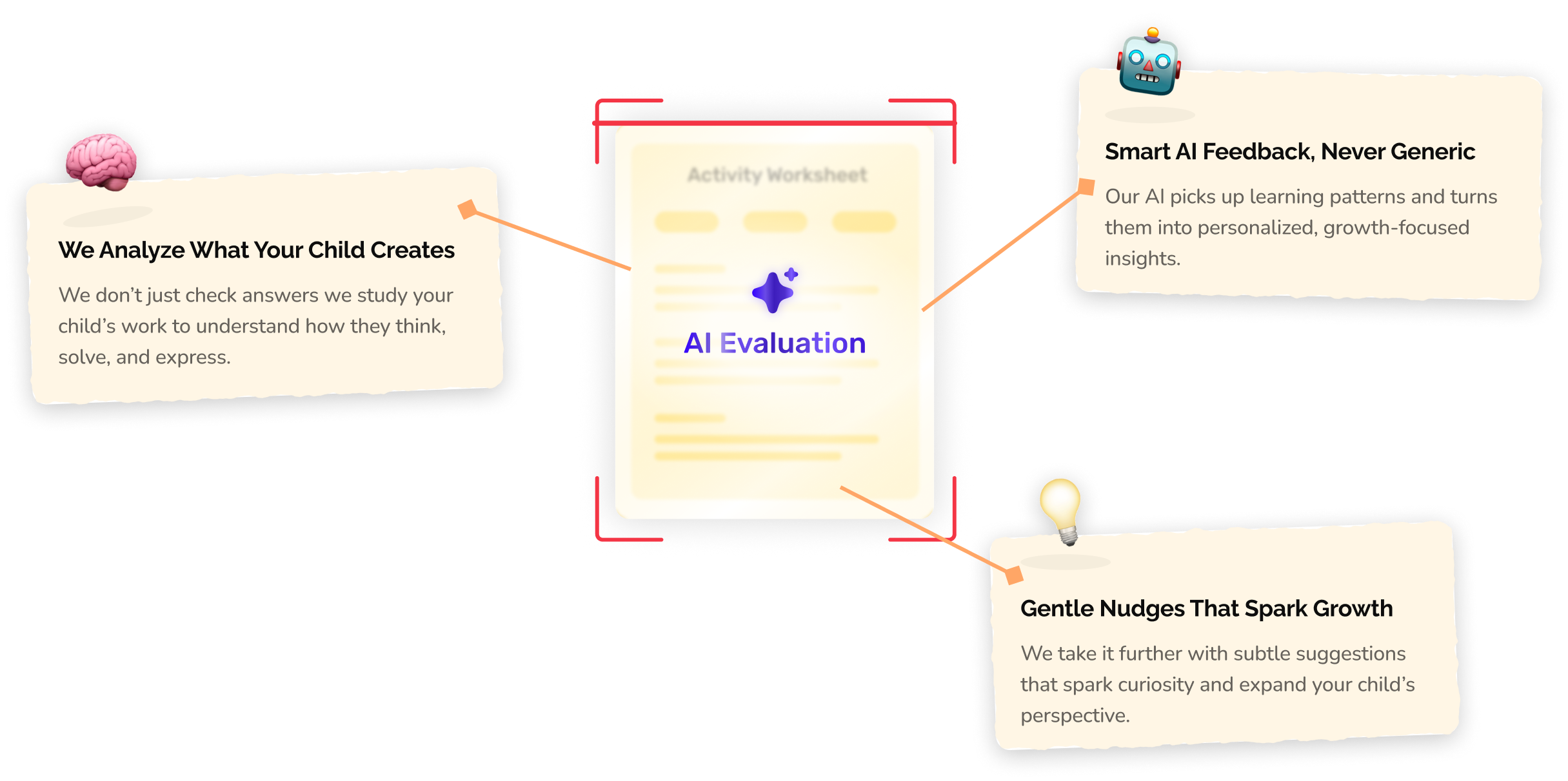 After upload, our system analyzes creativity and effort giving parents clear, personalized insights to track and support progress.